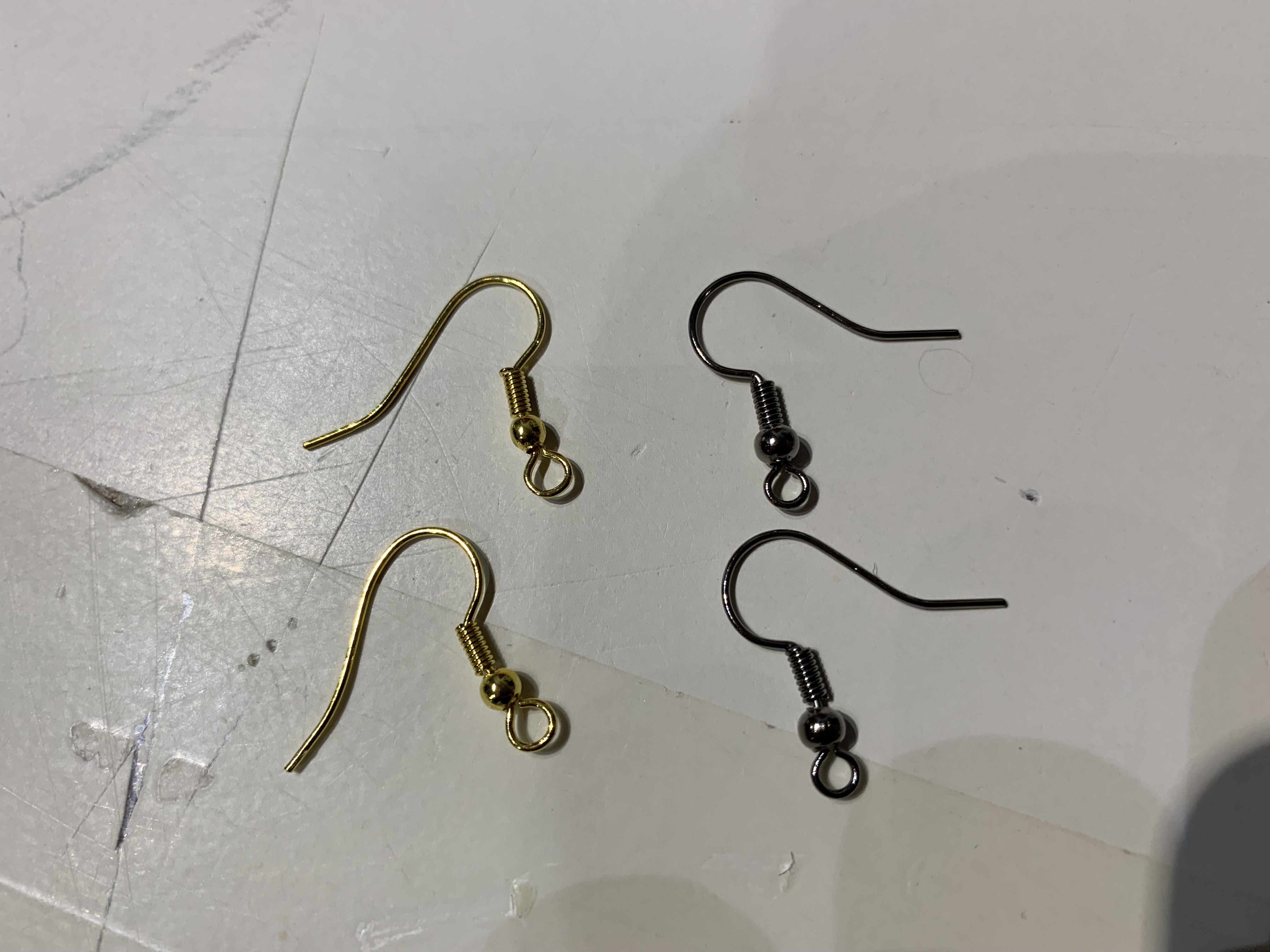 Ohrhacken in gold und in silber inklusive Gegenstück aus Gummi